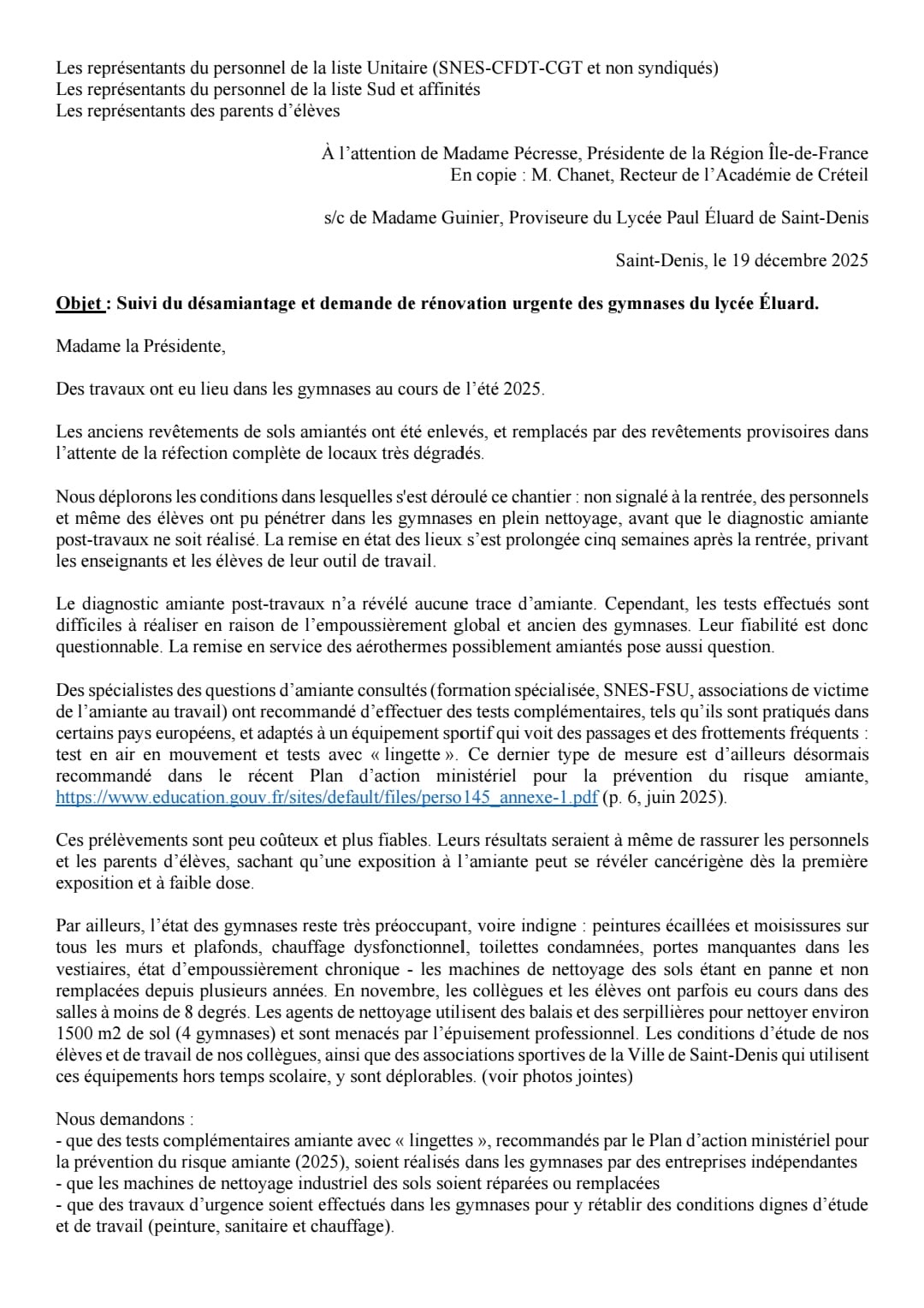 Vous êtes ici : Accueil actu des établissements Seine-Saint-Denis Inquiétudes bâtimentaires au lycée Paul Eluard (Saint-Denis) 21 décembre 2025 actu des établissements Inquiétudes bâtimentaires au lycée Paul Eluard (Saint-Denis)