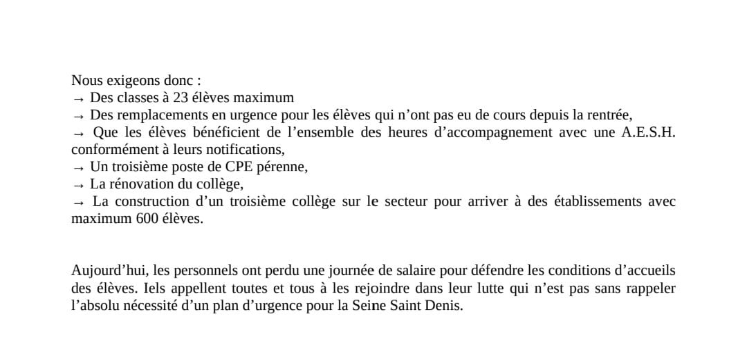 Vous êtes ici : Accueil actu des établissements Seine-Saint-Denis Communiqué de presse des personnels du collège Pablo Picasso (Montfermeil) 5 octobre 2025 actu des établissements Communiqué de presse des personnels du collège Pablo Picasso (Montfermeil)