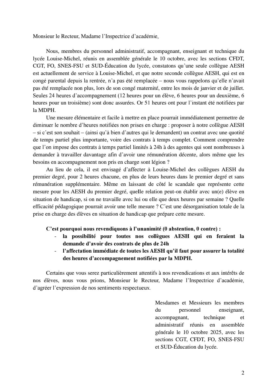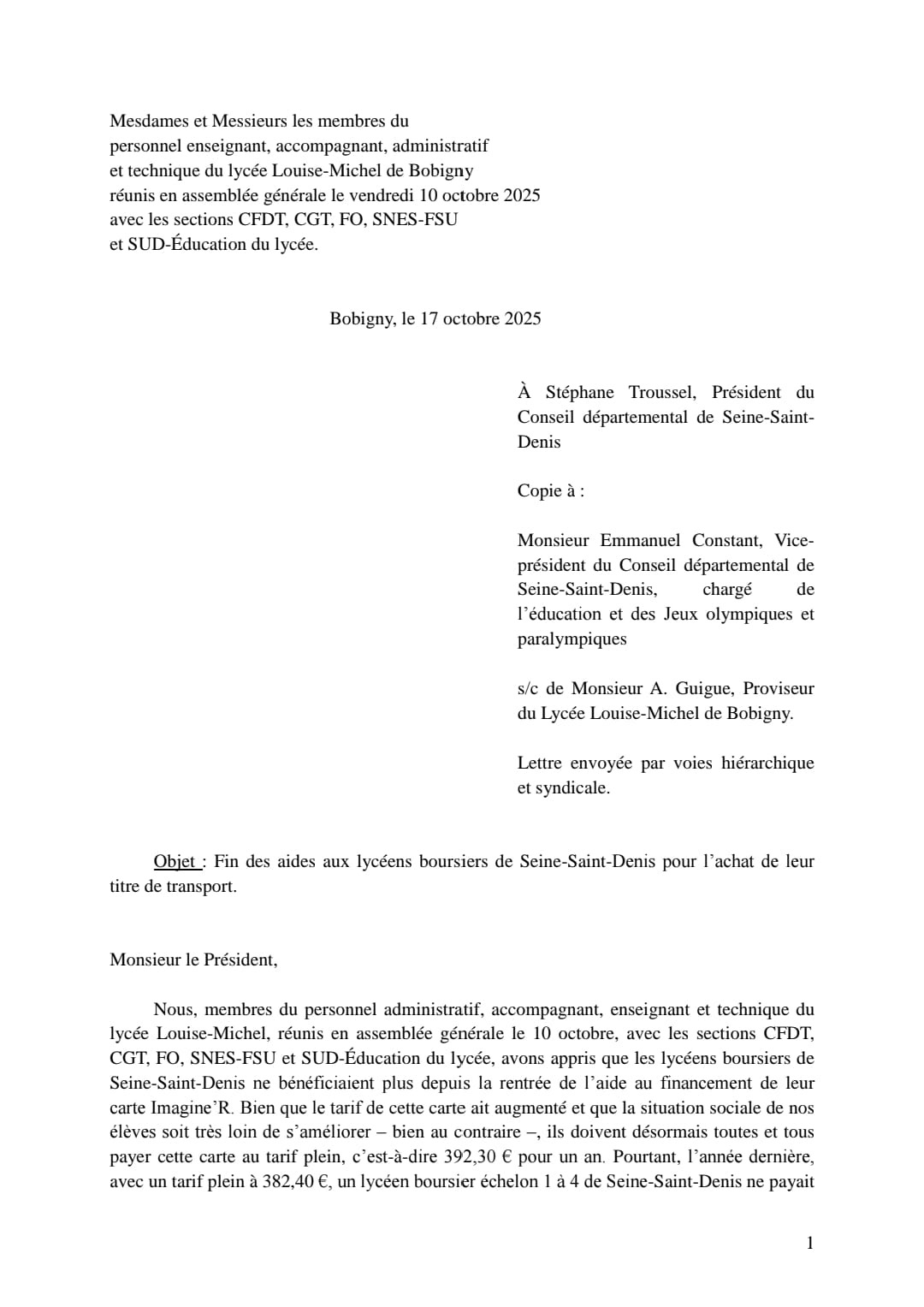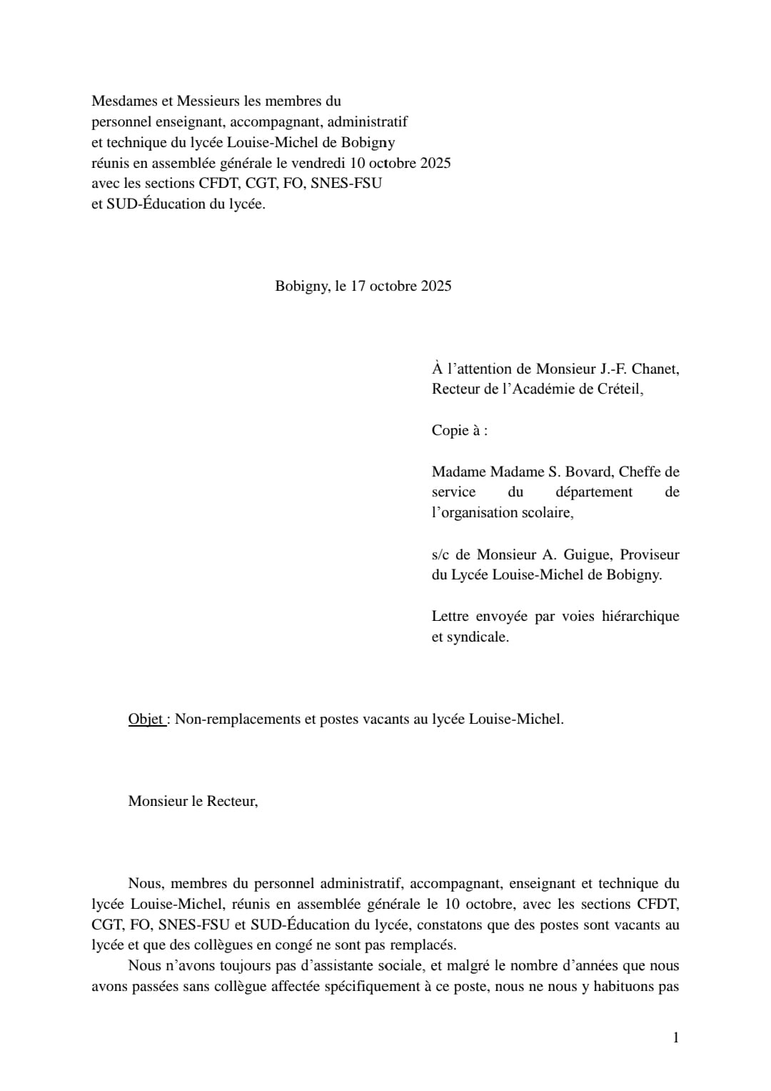 Vous êtes ici : Accueil actu des établissements Seine-Saint-Denis Le lycée Louise Michel (Bobigny) en lutte contre le démantèlement du service public 17 novembre 2025 actu des établissements Le lycée Louise Michel (Bobigny) en lutte contre le démantèlement du service public