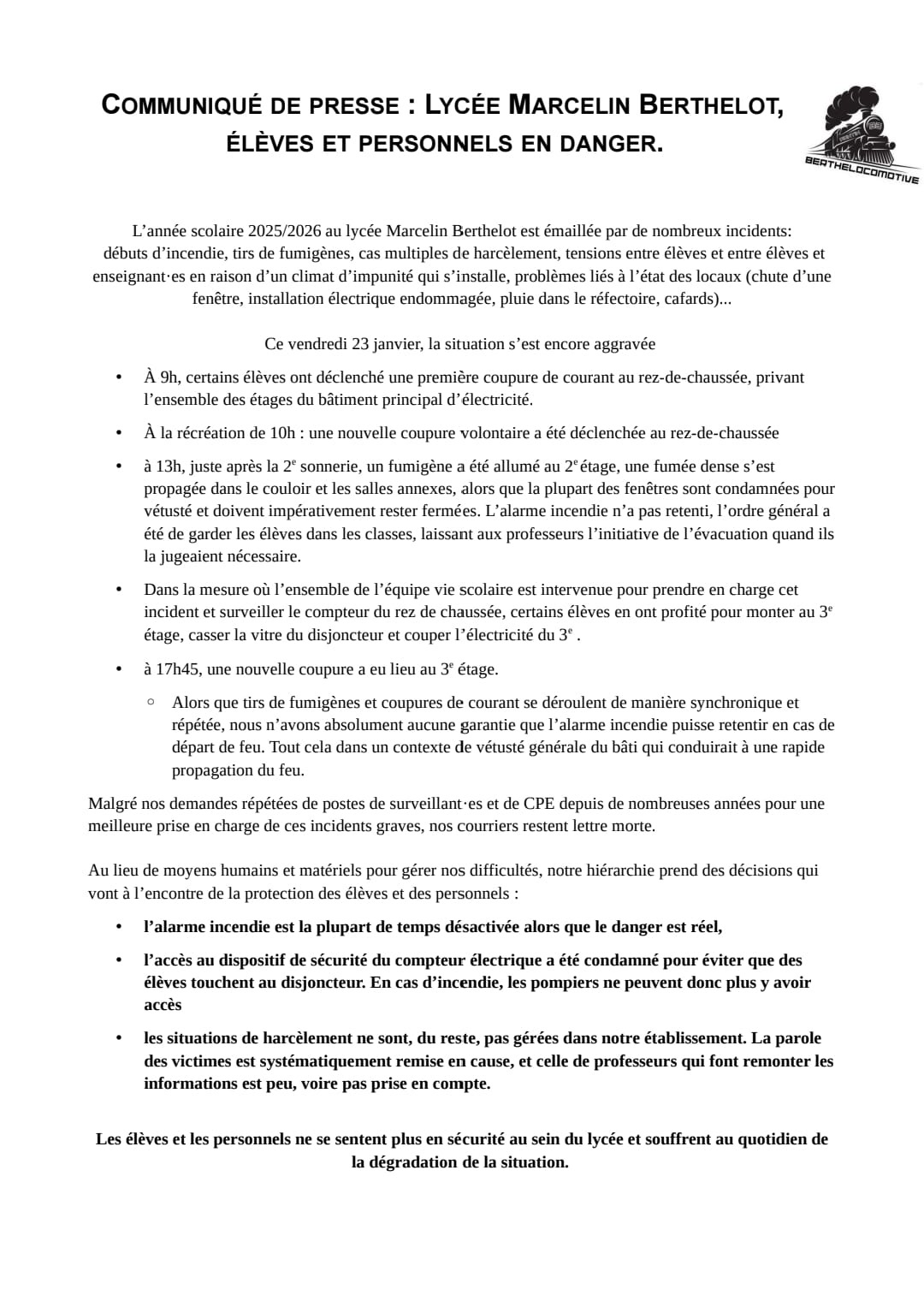 Vous êtes ici : Accueil actu des établissements Seine-Saint-Denis Un lycée au bord du chaos : le lycée Berthelot (Pantin) 26 janvier 2026 actu des établissements Un lycée au bord du chaos : le lycée Berthelot (Pantin)