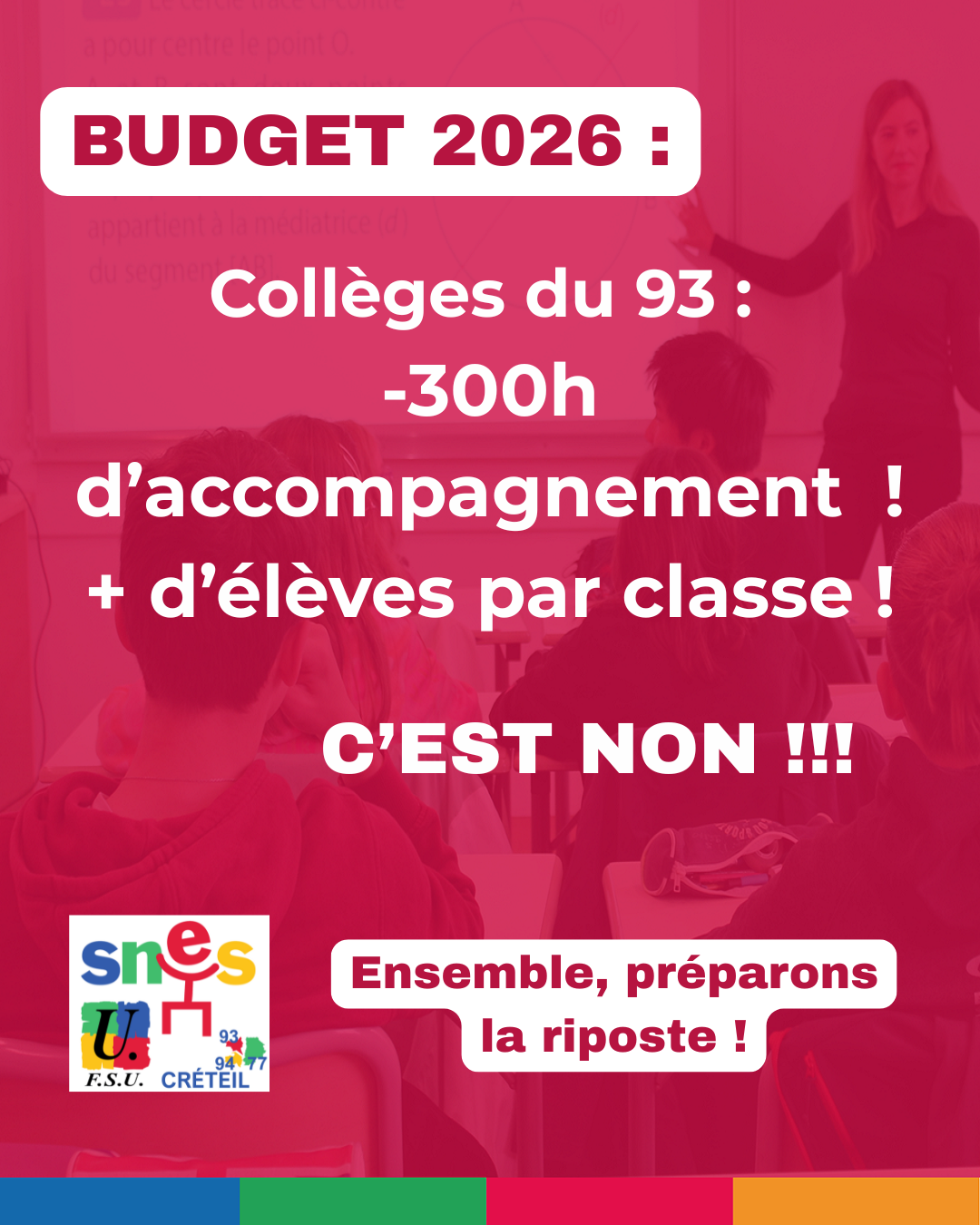 Le SNES-FSU Créteil appelle les personnels du second degré de l’académie à se mettre en grève et à manifester le 17 février 2026 contre le budget 2026 ! Les baisses de moyens dans l’Education, cela suffit !
