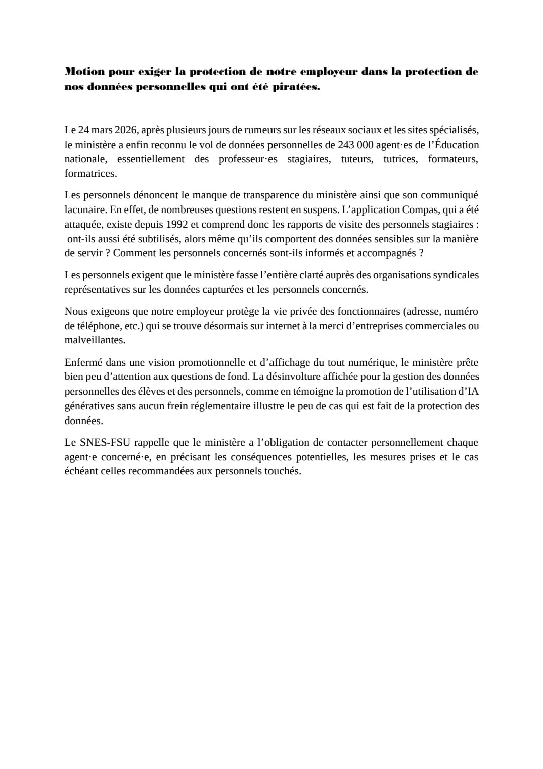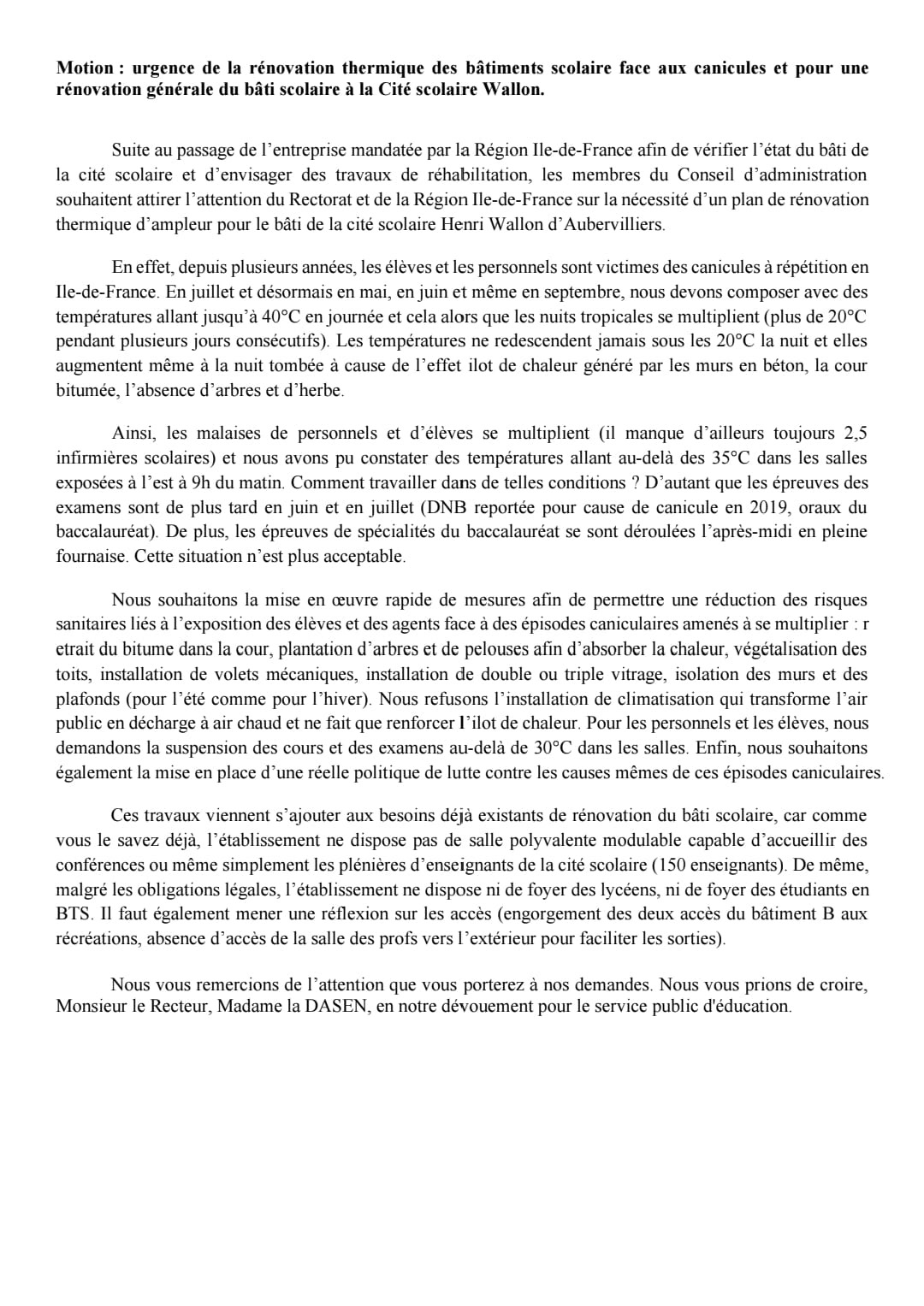 Vous êtes ici : Accueil actu des établissements Seine-Saint-Denis Motions votées en CA au collège Wallon (Aubervilliers) 18 avril 2026 actu des établissements Motions votées en CA au collège Wallon (Aubervilliers)